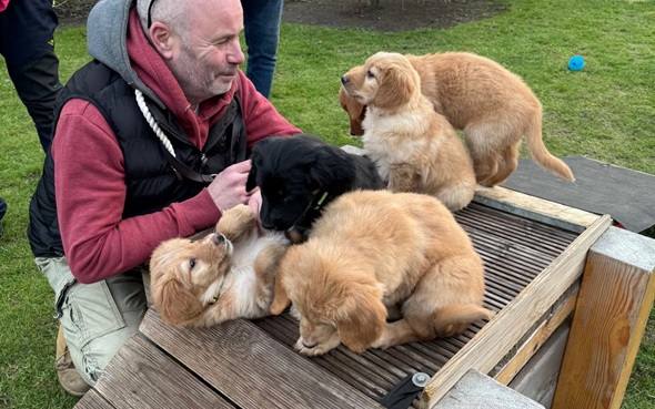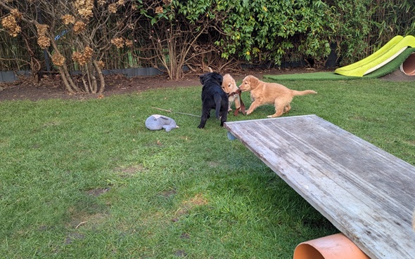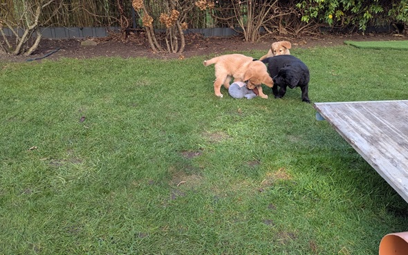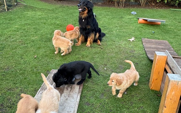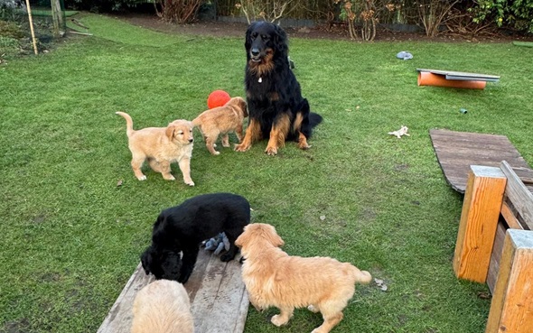 Ganz besonders freut es mich, dass die Züchter den schwarzen Rüden Guido behalten. Ich bin sehr gespannt wie er sich entwickelt.